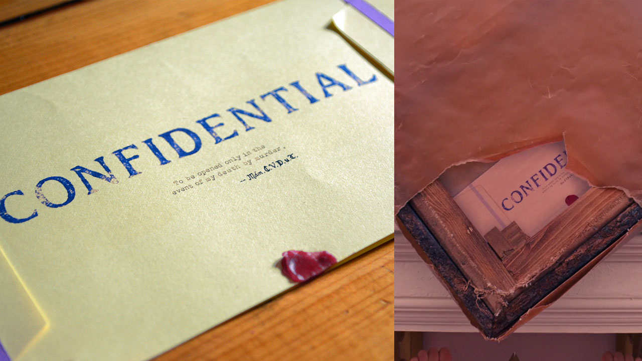 The confidential letter was all created in Illustrator and I recreated the folds and even used real wax to seal it.